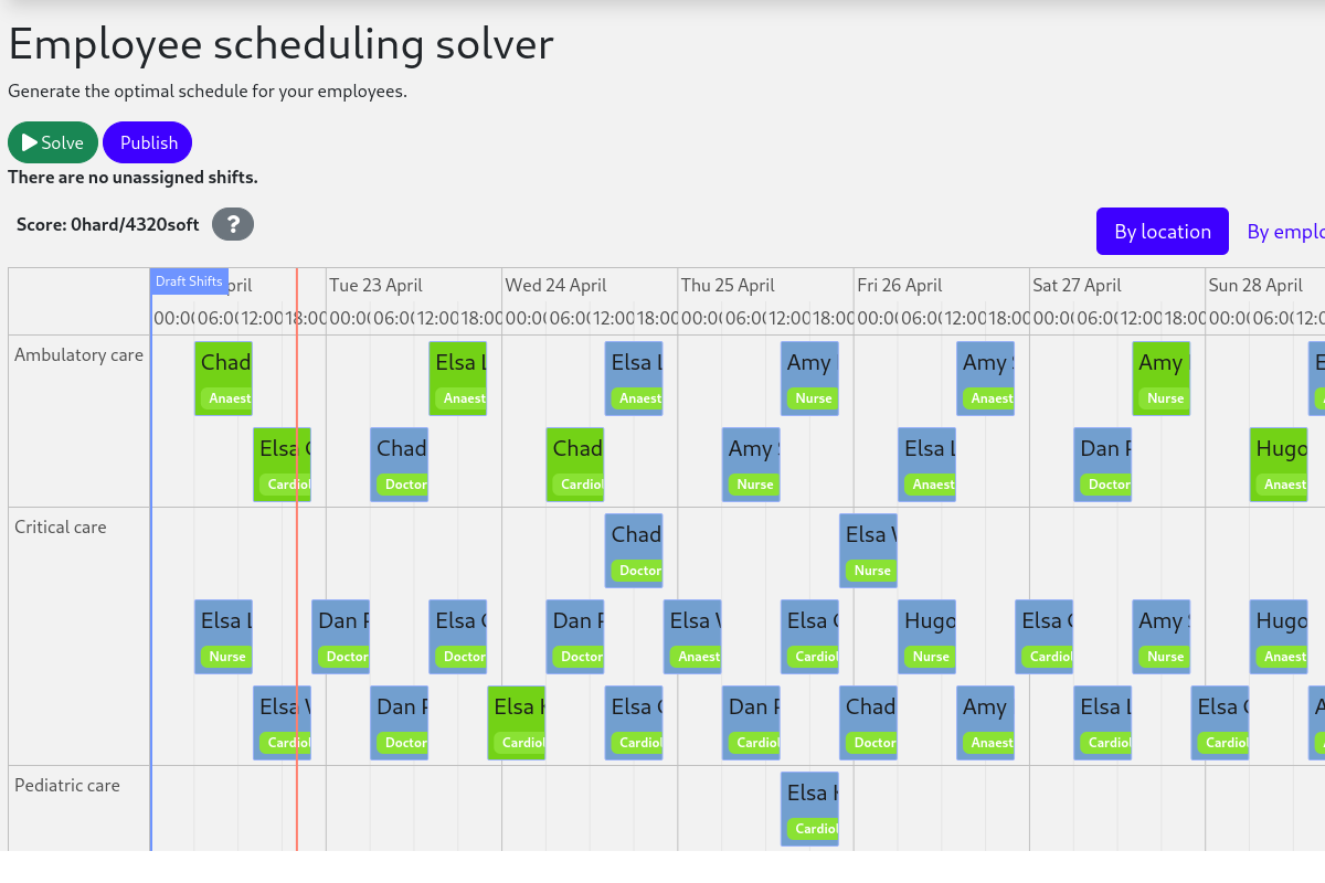 Schedule shifts to employees, accounting for employee availability and shift skill requirements.